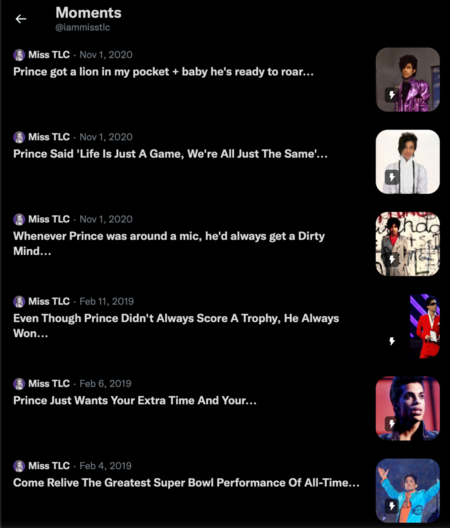 One of the ways Miss TLC provides content on Twitter is through Moments, which encapsulate her extensive musical history knowledge-based threads.